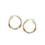 Diamond Cut 10K Tri-Color Gold Hoop Earrings add vibrancy and sparkle to the classic hoop design with the elegant harmony of three gold colors. They are the perfect choice for those seeking a warm color transition in their everyday outfits or a striking shine for special occasions. Buy online now and take advantage of free shipping and special discount opportunities.