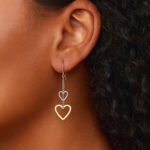These 10 k Two-Tone Gold Cutout Heart Chain Dangling Earrings are a heartfelt addition to any jewelry collection. Perfect for adding a touch of elegance to everyday outfits or special occasions.