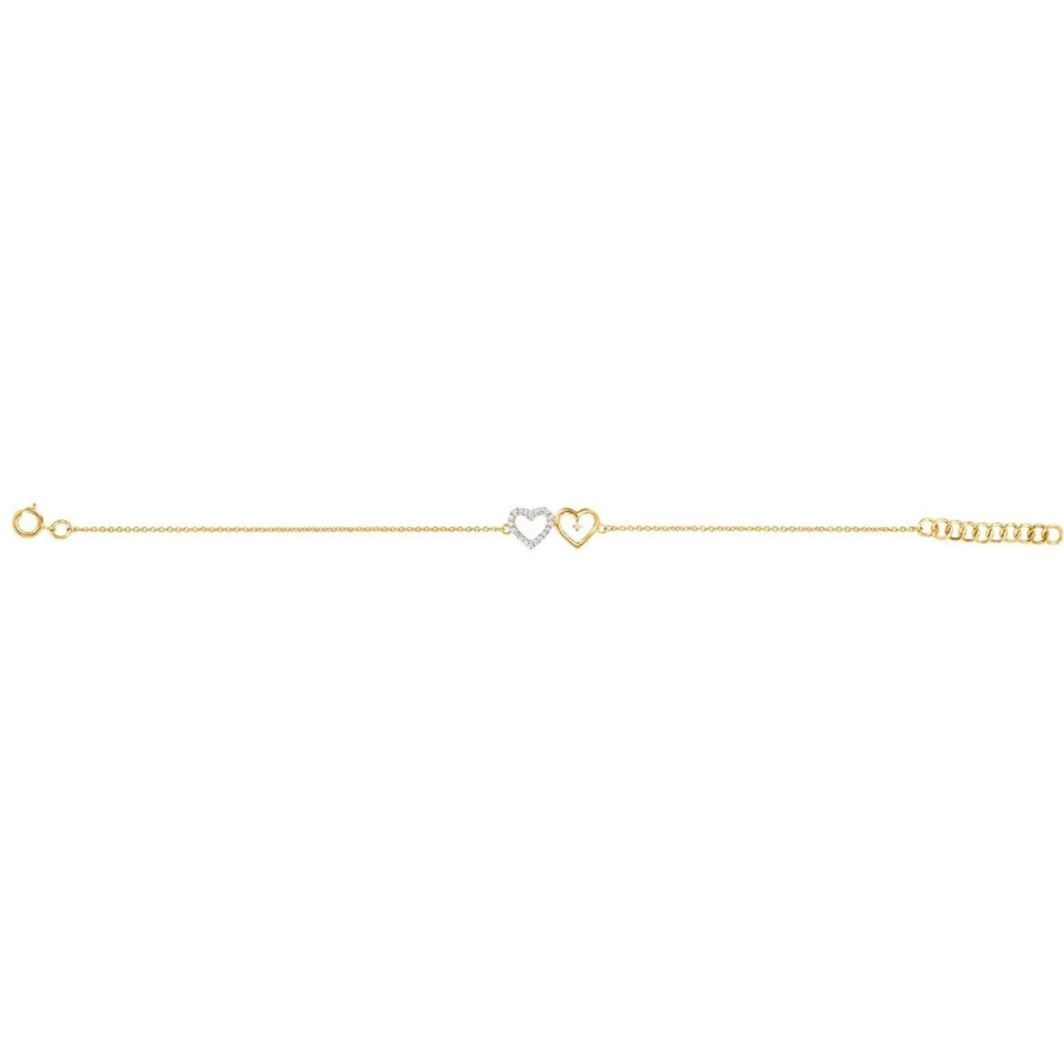10K Yellow Gold Diamond Double Heart Bracelet for Women