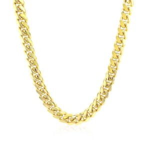 Introducing the 10k Yellow Gold Semi Solid Miami Cuban Chain, a timeless accessory that adds a touch of elegance to any outfit. This stylish chain is perfect for those who appreciate quality craftsmanship and want to make a statement.