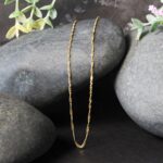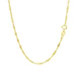 This chain’s unique Singapore style offers a delicate twist, making it ideal for both casual and formal outfits. Wear it with a simple blouse for a day out or a little black dress for an evening event. Its lightweight design ensures comfort, while the spring ring clasp provides secure closure.