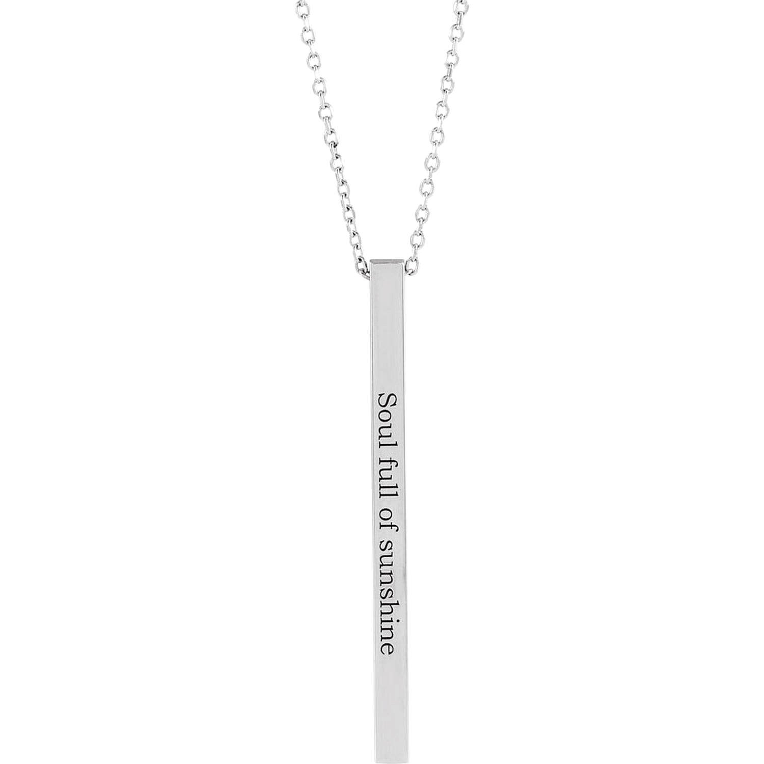 The vertical bar design offers flexibility in personalization, allowing different elements to be distributed across multiple sides while keeping the necklace visually balanced. The engraving is oriented to be read naturally when viewing the necklace from the front, preserving a refined and intentional appearance.