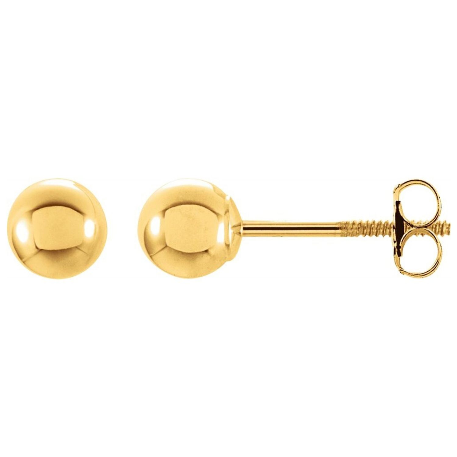 14k Yellow Gold Ball Stud Earrings with Screw Backs