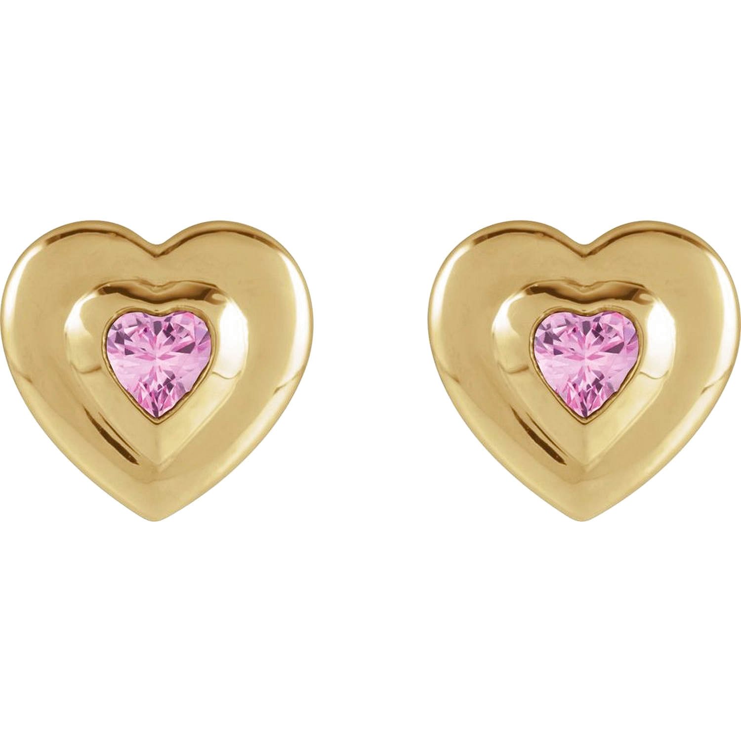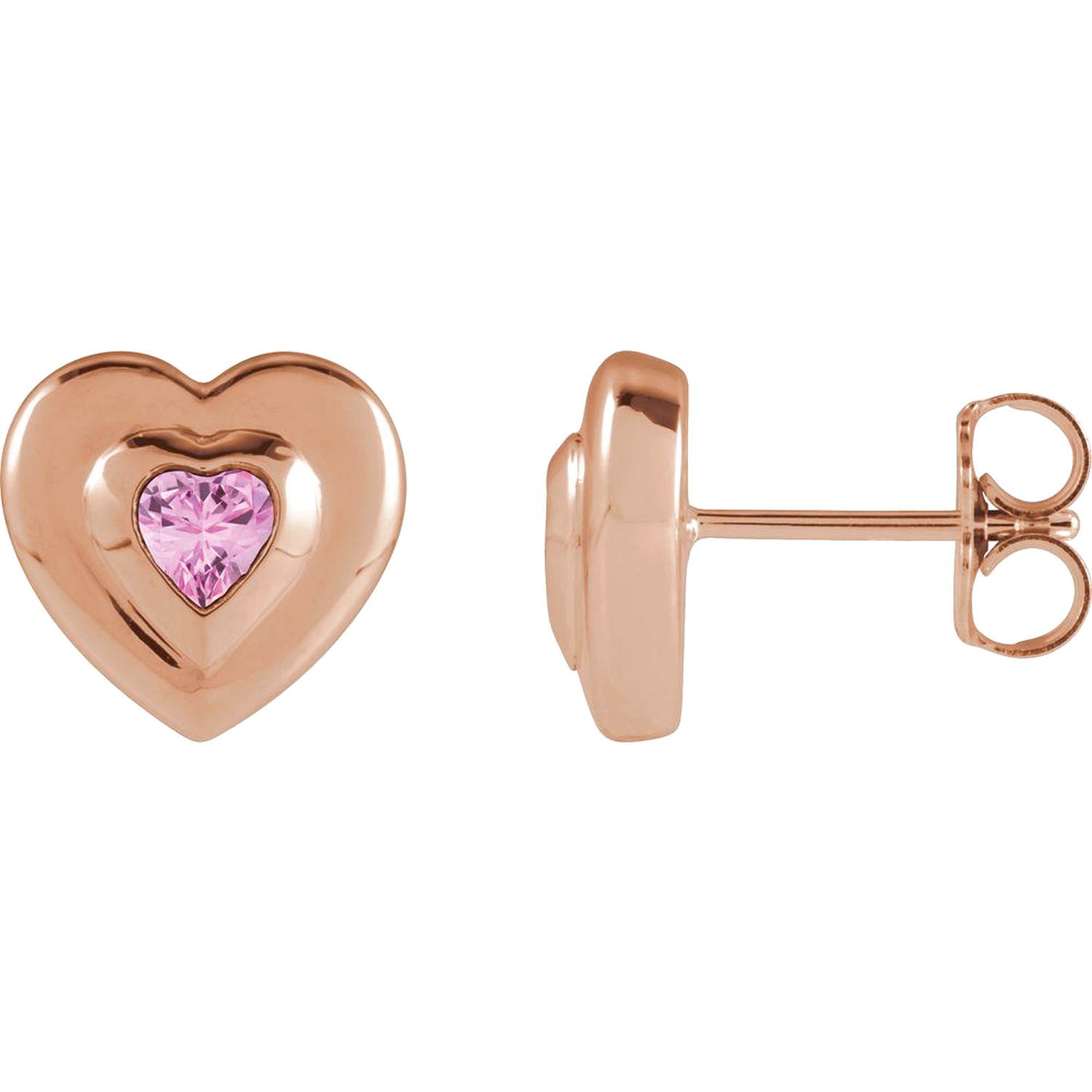 Real 14K Gold Bezel Set Heart Pink Tourmaline Stud Earrings