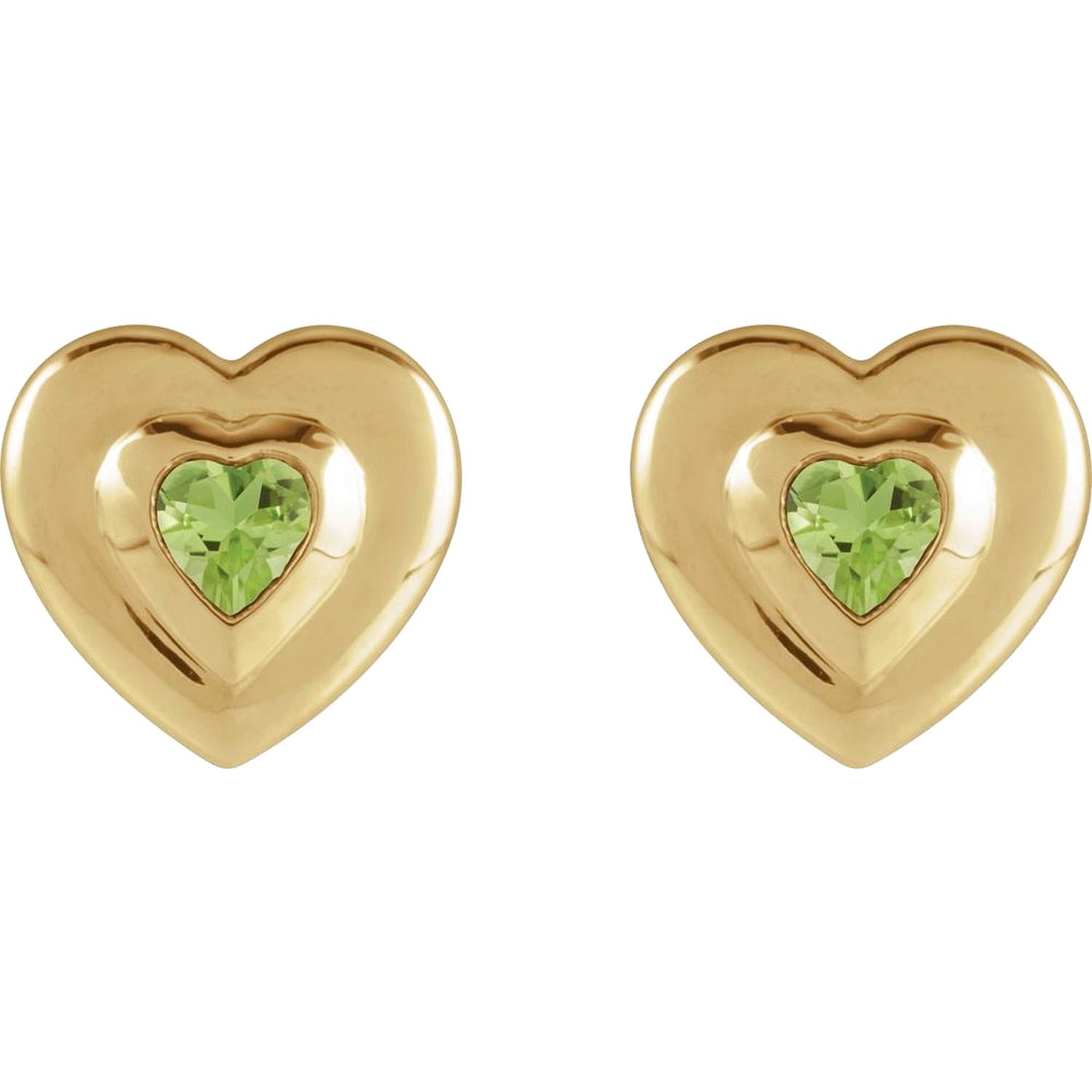 14K Gold Bezel Set Heart Peridot Stud Earrings