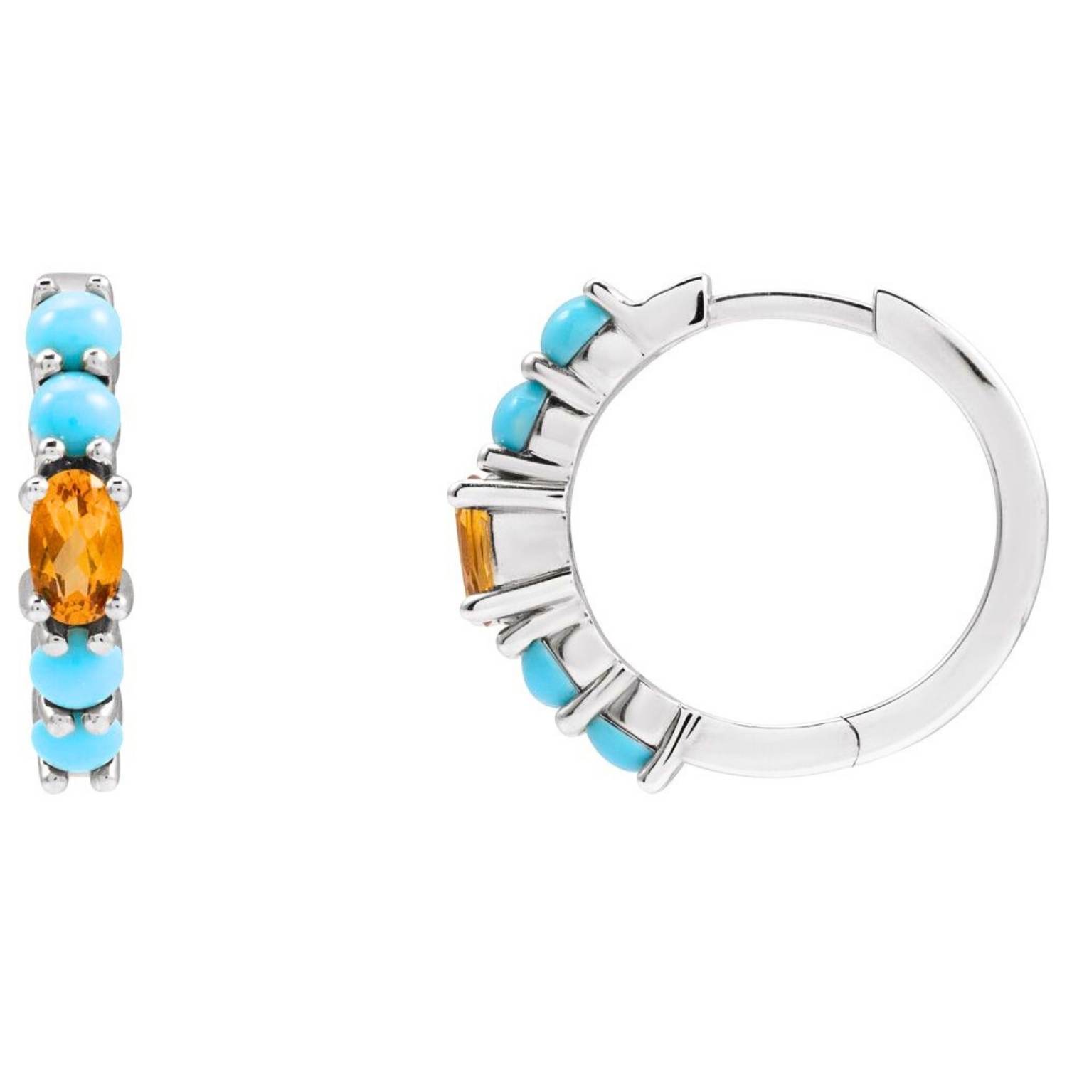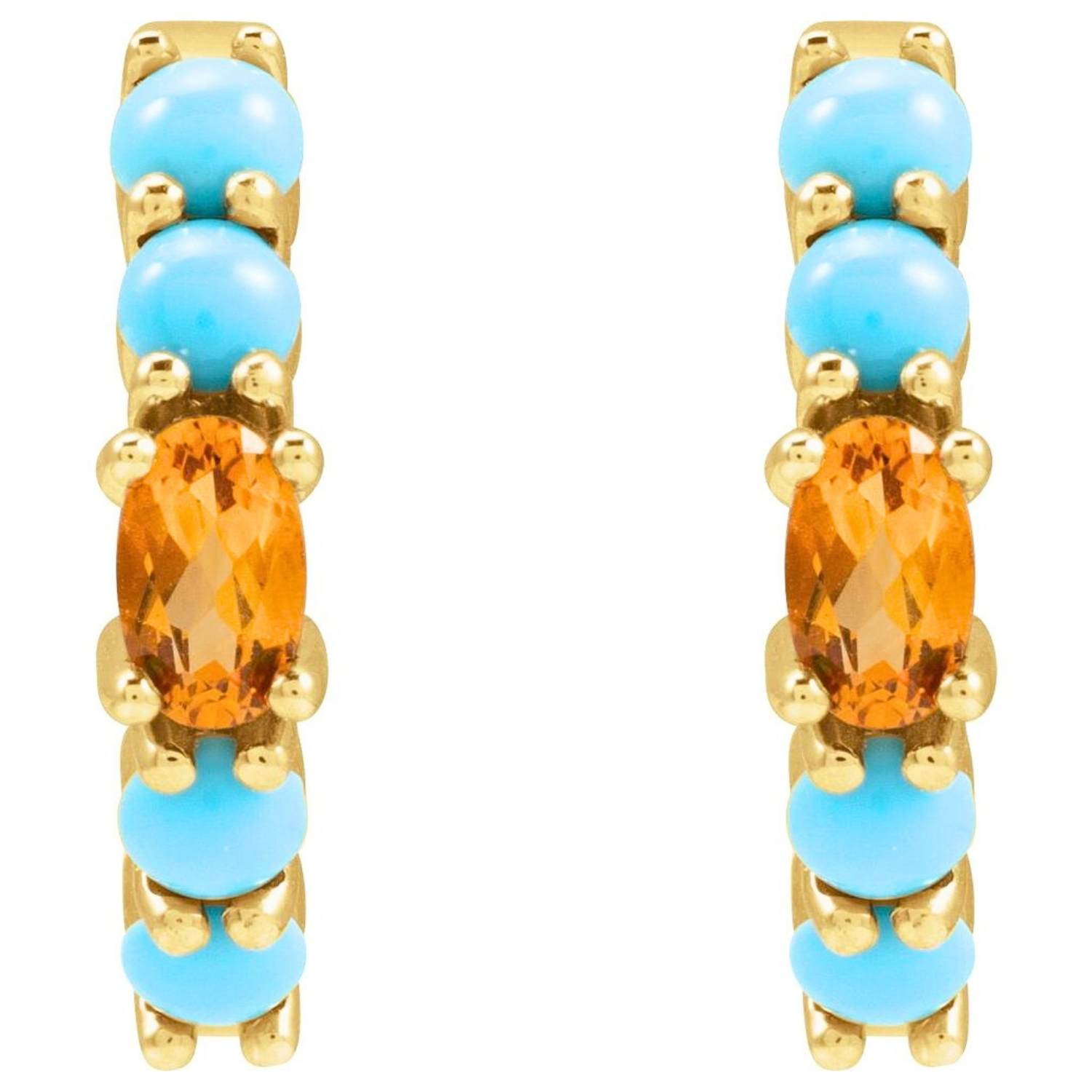 14K Gold Citrine and Turquoise Hoop Earrings 19.6 mm for Women