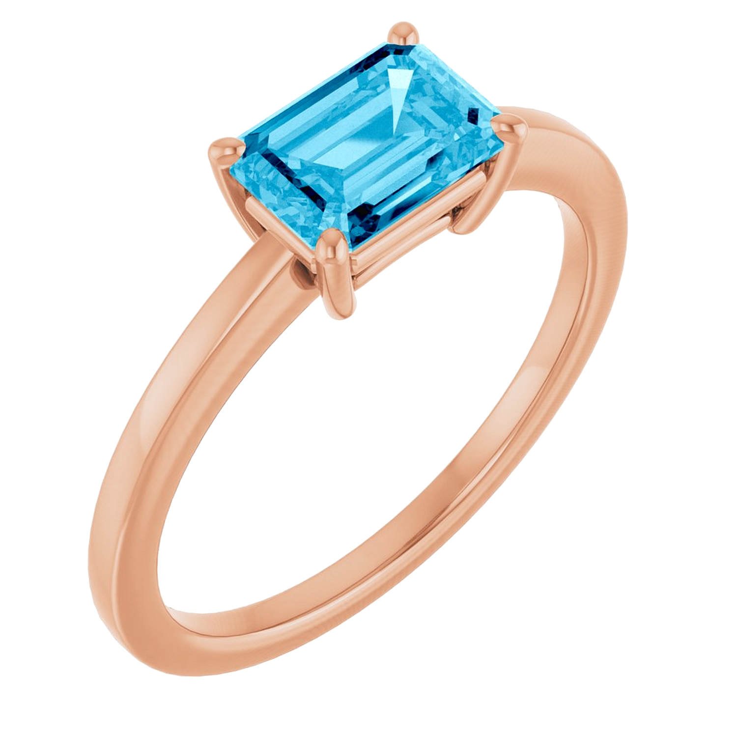 14K Gold 1 Carat Emerald Cut Natural Aquamarine Solitaire Ring