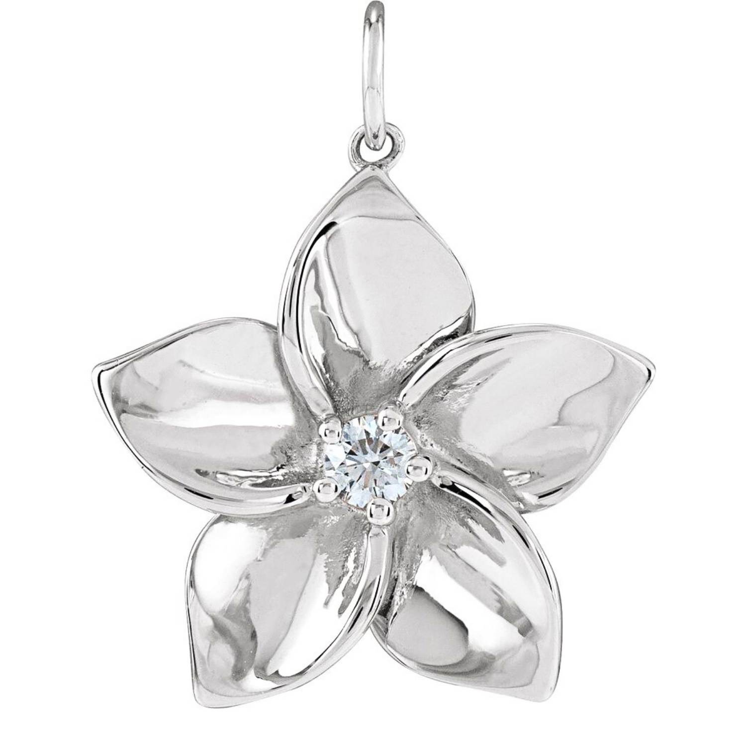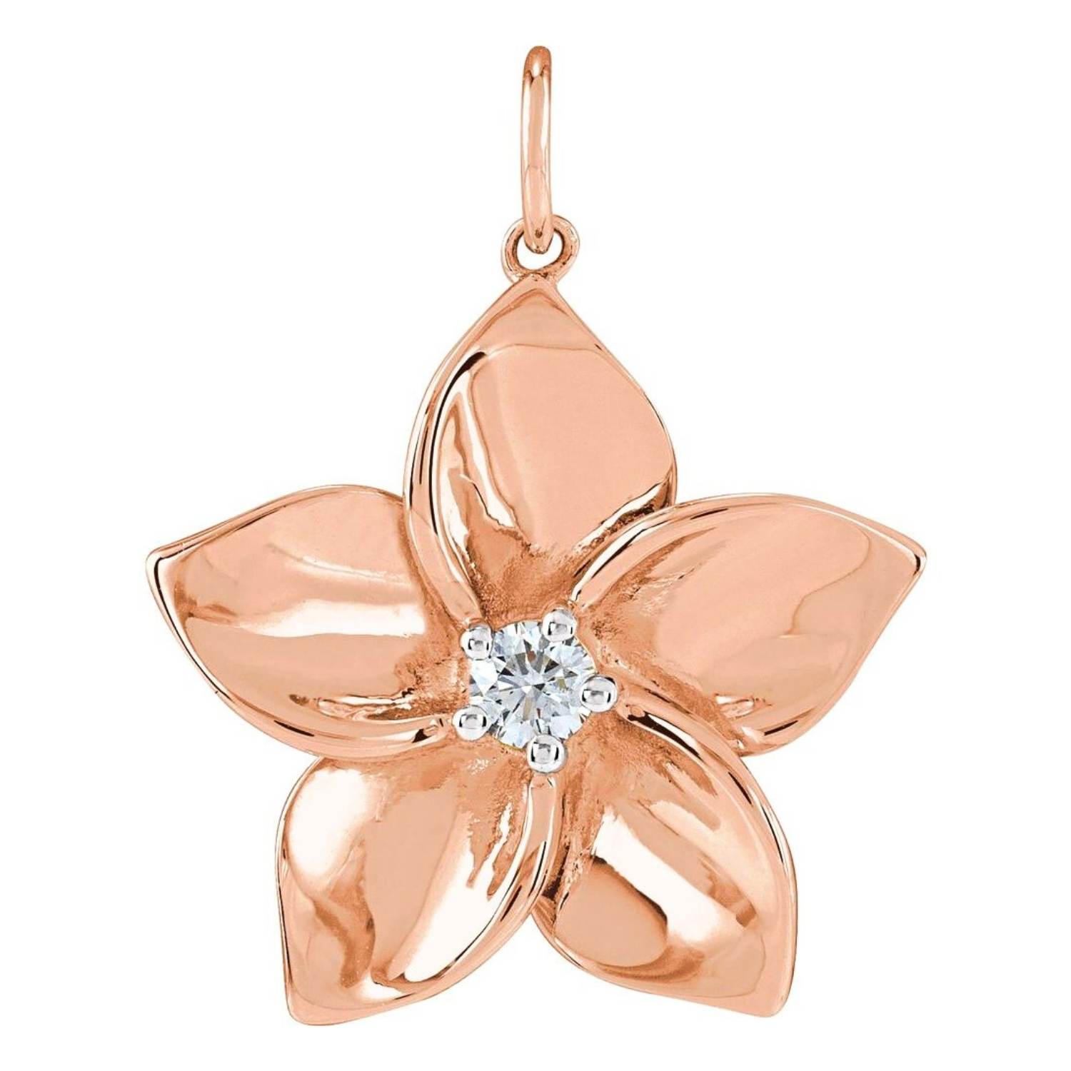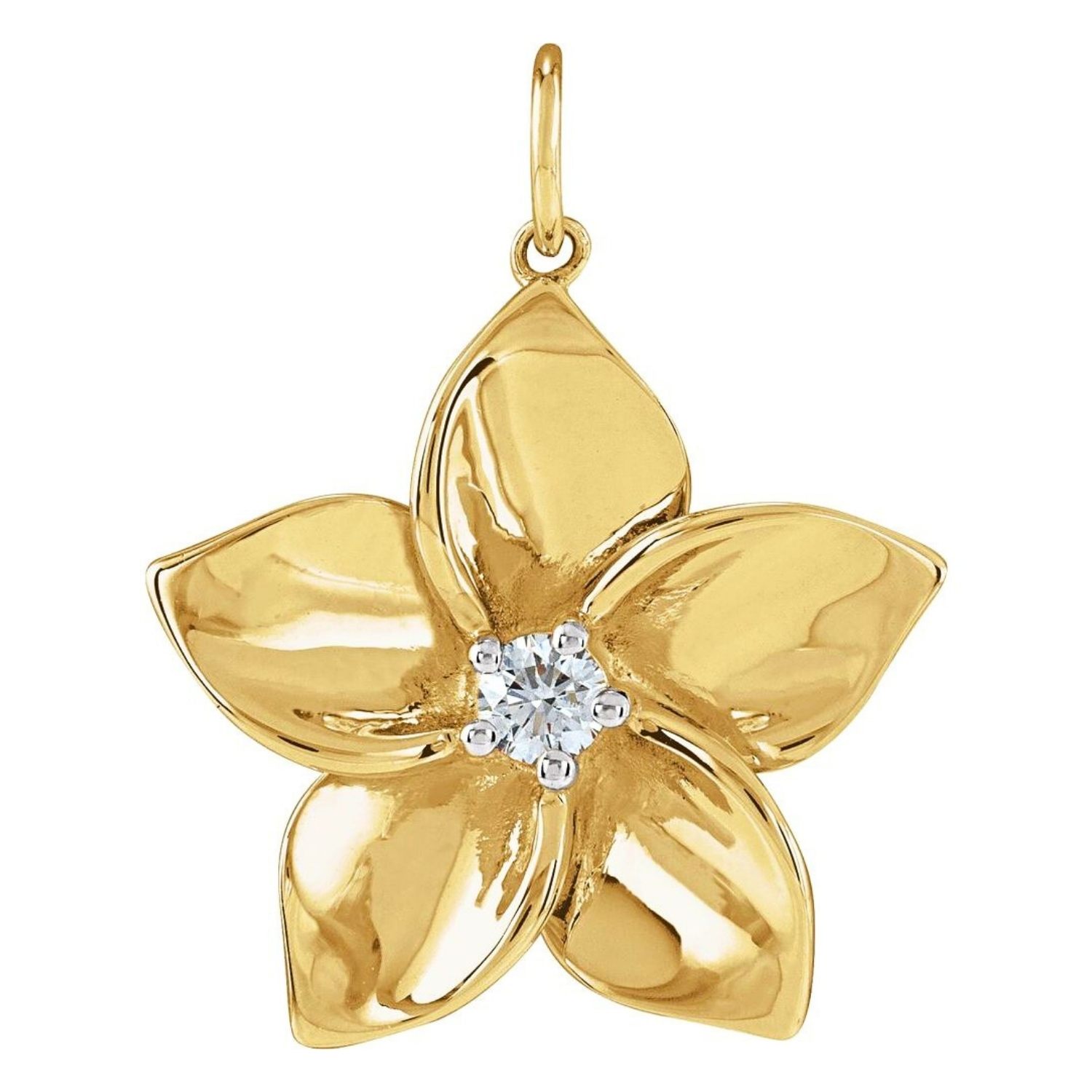 14K Gold Hawaiian Plumeria Flower Pendant with Diamond Center