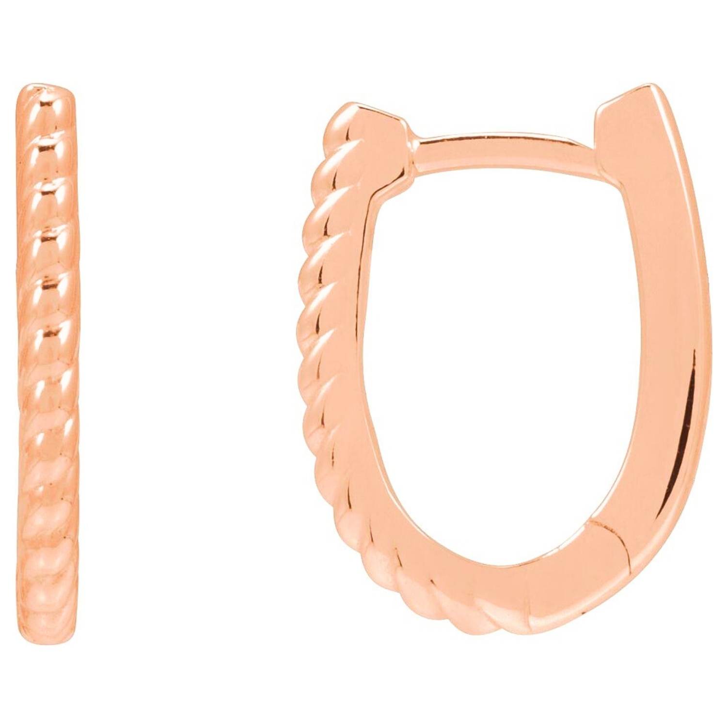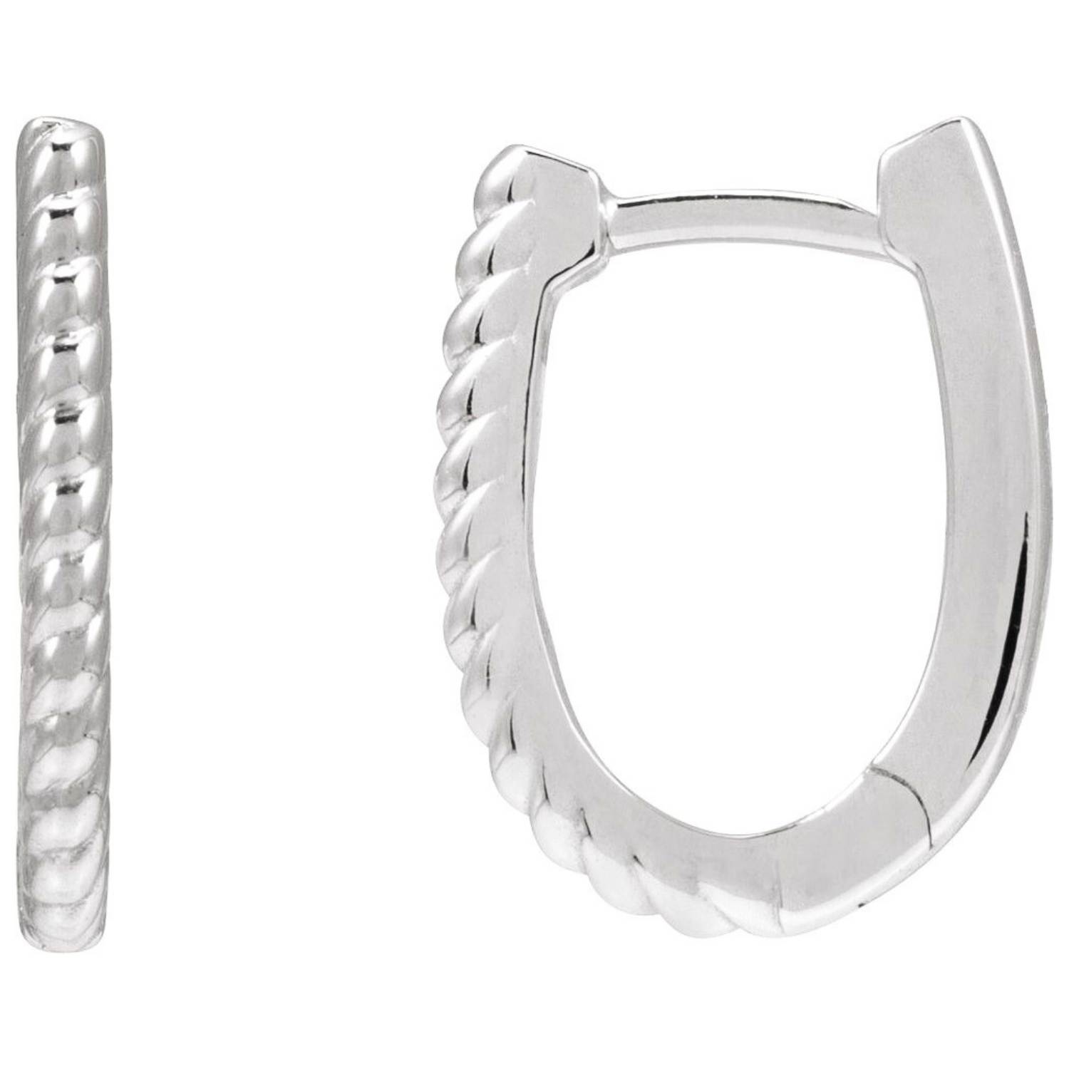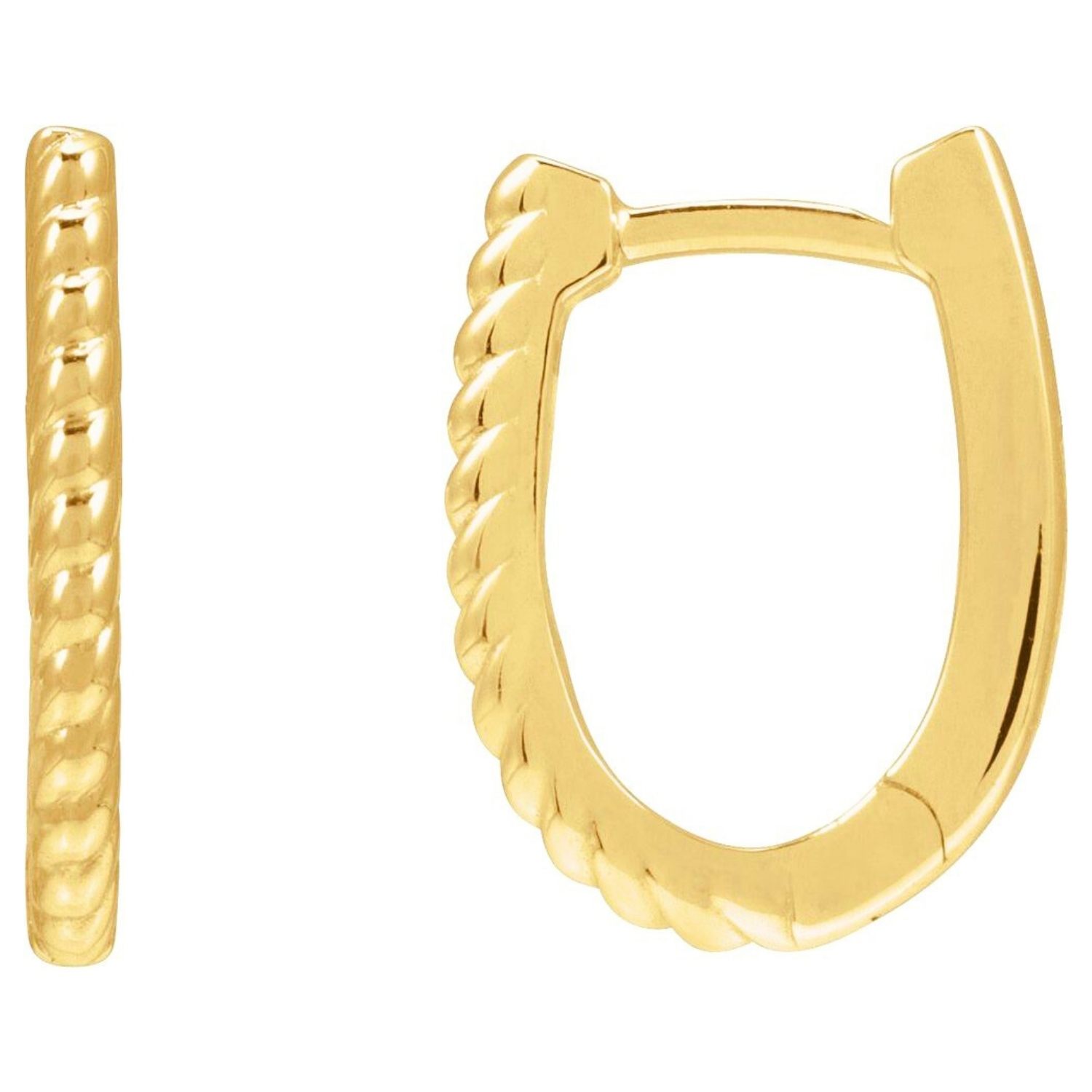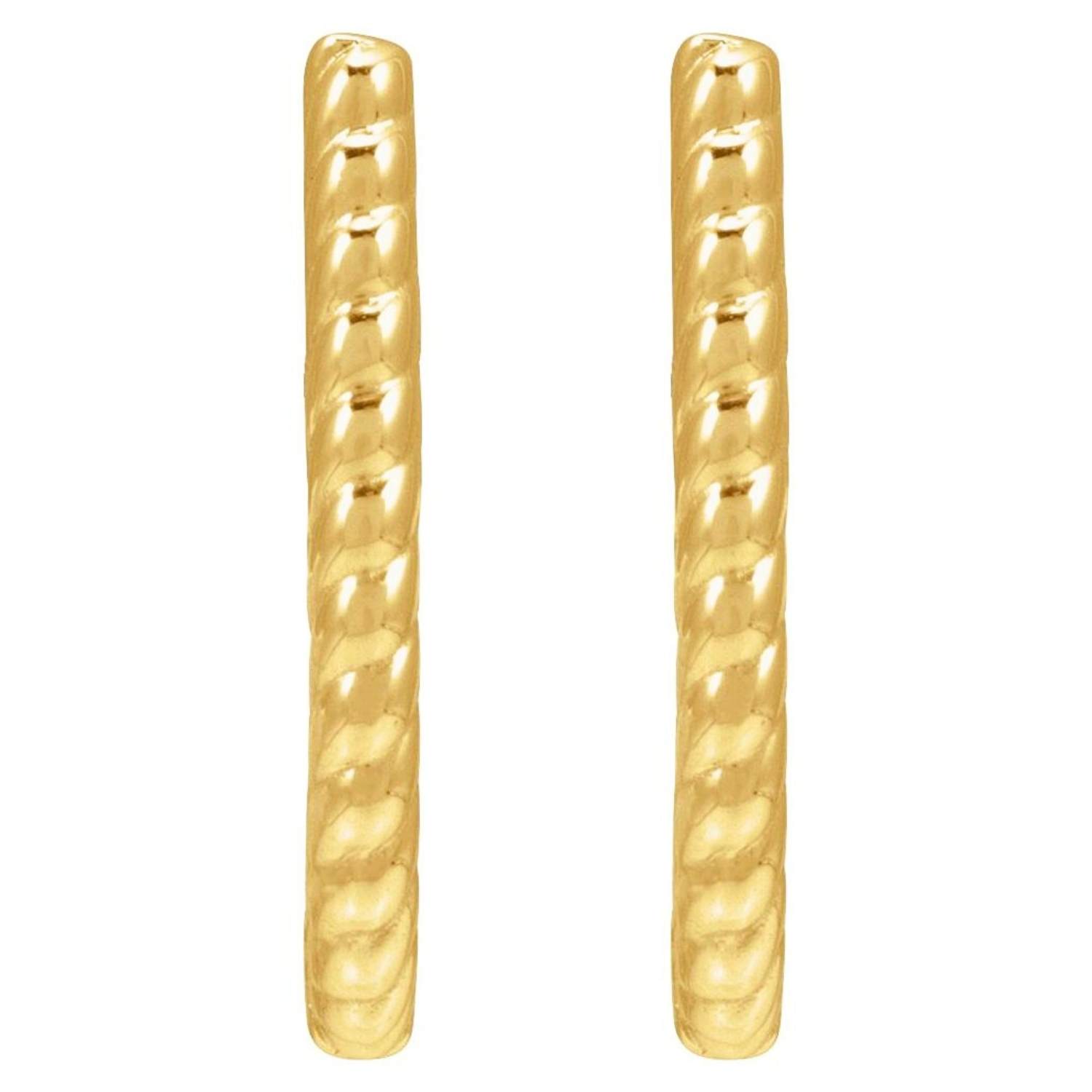 Solid 14K Gold Rope Pattern Oval Hoop Earrings 15mm