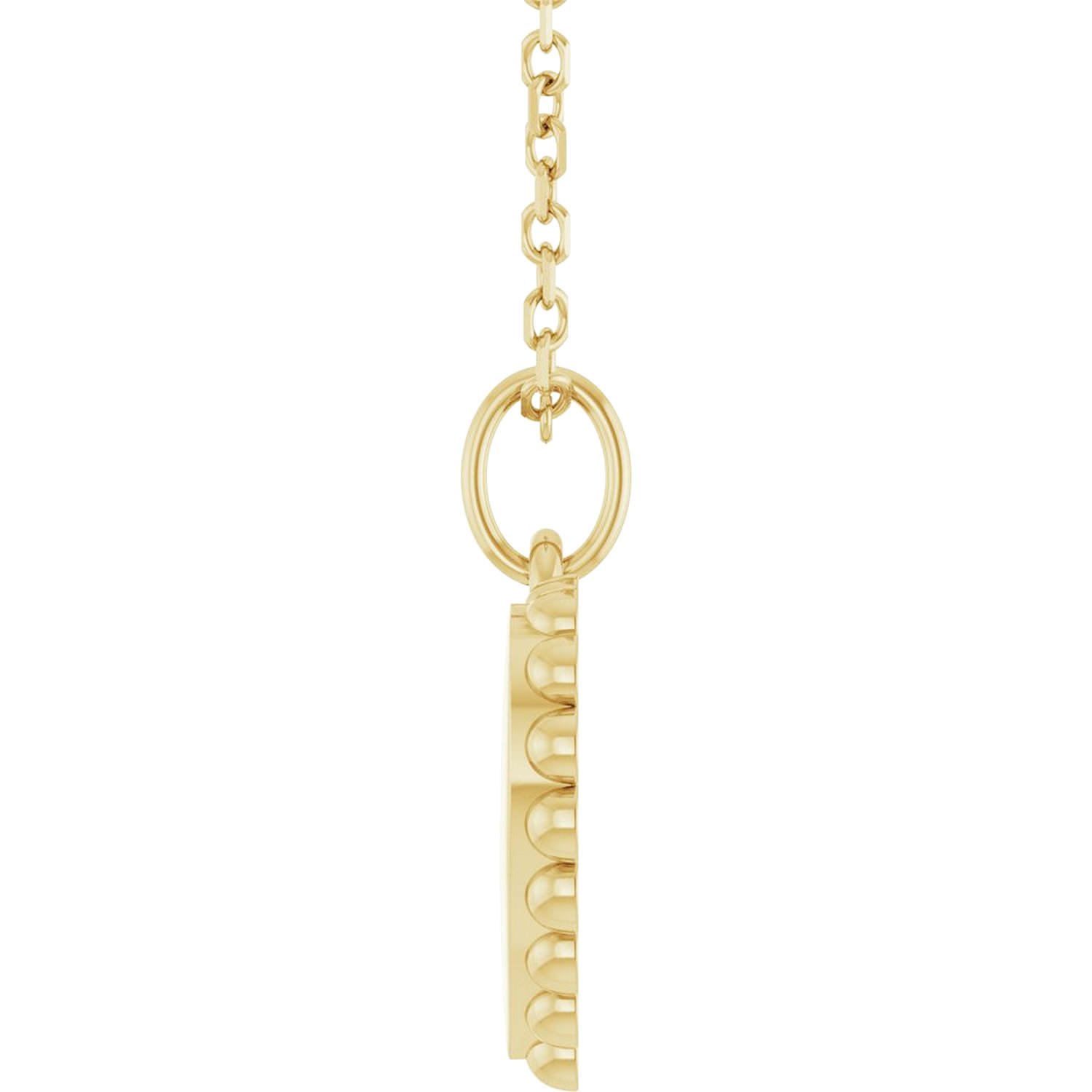 Designed using 14K solid gold, the Scalloped Engravable Heart Necklace offers an elegant look with a 14 x 11 mm heart-shaped pendant. The scalloped edge design gives the necklace a minimal yet eye-catching detail. With a 16–18 inch cable chain and 1 mm wide bail, it is an ideal choice for everyday wear and special occasions. You can personalize it by engraving a name or any text up to 12 characters.