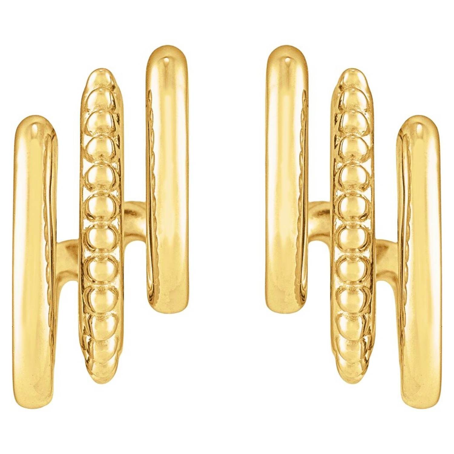 15 mm 14K Gold Three Row Beaded Stacked J-Hoop Earrings Hoop Earrings