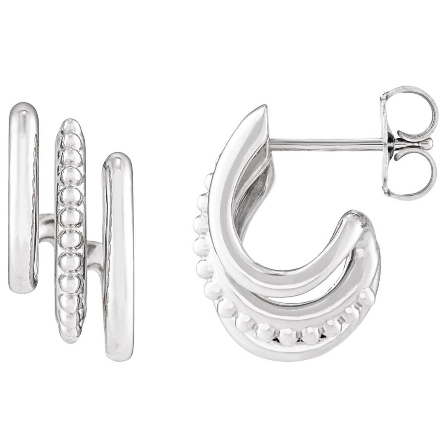 The 14K Gold 15 mm Three Row Beaded Stacked J Hoops are a special earring design that appeals to every era with its modern design and elegant details. Order online now and take advantage of free shipping and special discount opportunities.