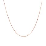 This 14 k rose gold classic box chain is a timeless piece that adds a subtle elegance to any outfit. Its delicate design makes it perfect for layering or wearing alone, showcasing the beauty of rose gold. Ideal for everyday wear or special occasions, it effortlessly complements your personal style.