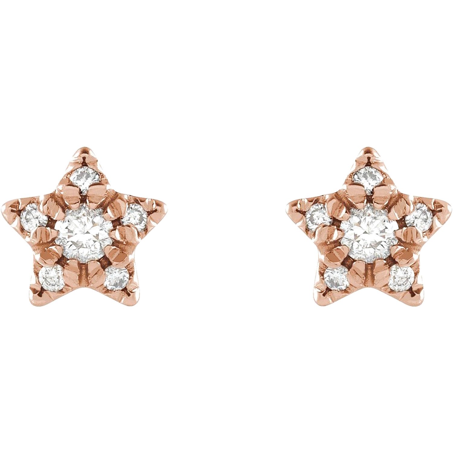 Small Sparkling 14K Rose Gold Diamond Star Stud Earrings 1/10 Ct tw