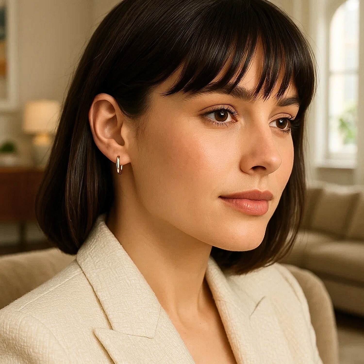 With their simple lines and elegant design, these 14K Rose Gold Thin Small 11.5mm Hoop Earrings are an essential part of everyday chic. Crafted from genuine 14-karat rose gold, these hoop earrings offer an elegant sparkle with their slim form and polished surface. They are tarnish-resistant, nickel-free, and hypoallergenic, making them comfortable to wear all day long. Their lightweight design ensures they feel weightless on your ears and easily complement any style.