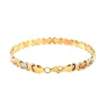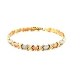 Fancy Satin Surface 14k Tri-Color Gold Heart and X Link Bracelet