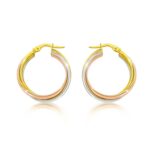 Enhance your jewelry collection with these elegant tri color gold woven hoops. Shop now and enjoy a classic accessory with a modern flair.