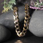 This curb chain adds a touch of sophistication with its unique two-tone design, making it suitable for both casual and formal occasions. It can be worn alone for a classic look or layered with other necklaces for a trendy vibe.