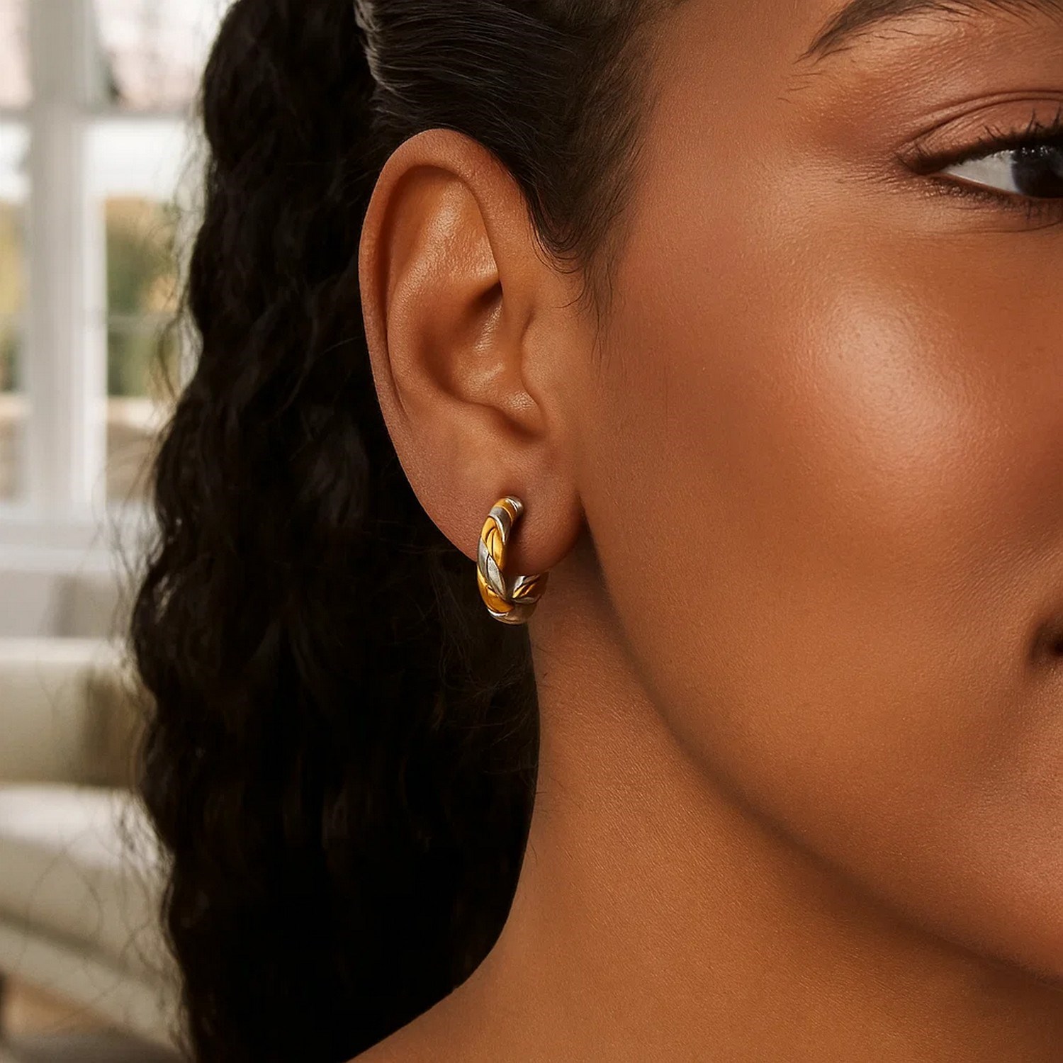 14K Two-Tone Gold Twist Hoop Earrings 15mm x 2.5mm