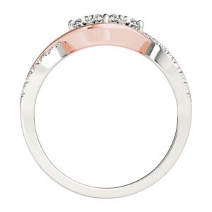 Introducing the enchanting 14 k White and Rose Gold Infinity Style Diamond Band, a timeless piece that beautifully symbolizes eternal love and commitment. This exquisite ring features a delicate infinity design adorned with shimmering diamonds, making it an ideal choice for special occasions or everyday elegance.