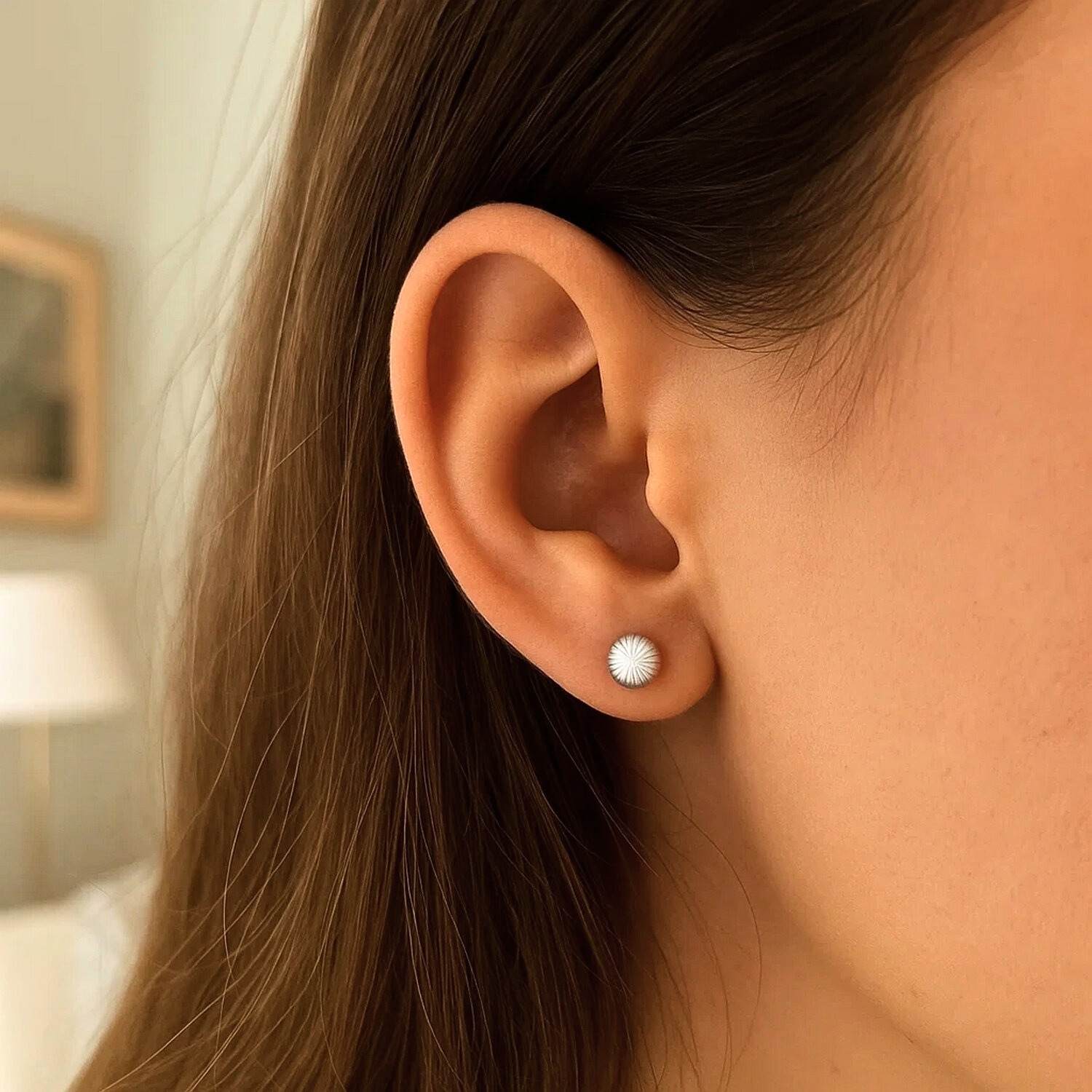 14K White Gold Linear Textured 5mm Ball Stud Earrings are an elegant piece that should be part of every jewelry collection, with their simple design and finely textured surface. Thanks to its genuine 14K white gold construction, it maintains its long-lasting shine, does not tarnish, and features fine jewelry-quality craftsmanship. Its lightweight design makes it comfortable for everyday wear and its modern design complements any style.