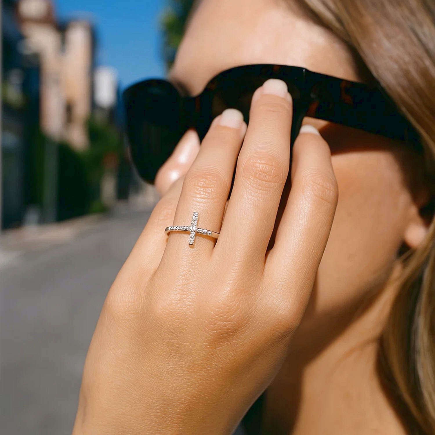 14k White Gold Diamond Sideways Cross Ring offers a meaningful and elegant design suitable for everyday wear with its simple form and balanced proportions. Handcrafted, this ring is made with fine jewelry quality. Its comfortable structure ensures a comfortable fit on the finger all day long. The 14K white gold structure is durable and does not tarnish; it retains its shape and shine for a long time. The diamonds set on the sideways cross shape add both sparkle and a powerful symbolic meaning to the ring, offering a simple yet impressive statement. It looks elegant on its own and pairs well with other rings for layered looks. It can be worn daily or chosen as a meaningful and stylish gift option for special occasions.
