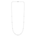 The 14K White Gold 1/4 cttw Diamonds by the Yard Necklace is an elegant piece of jewelry crafted with fine jewelry quality, featuring small diamonds set in bezels on the chain to create a sophisticated and light-catching style. Its bright white gold surface retains its original appearance for a long time and does not tarnish. Its hypoallergenic composition makes it safe for use on sensitive skin. Its minimalist design creates a modern and meaningful style when worn alone or combined with other necklaces. It is a unique piece of jewelry that can be presented as a luxurious and stylish gift for Valentine’s Day, birthdays, or other special occasions.
