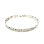 14k White Gold Heart Shape Textured Bracelet (6.35 mm)