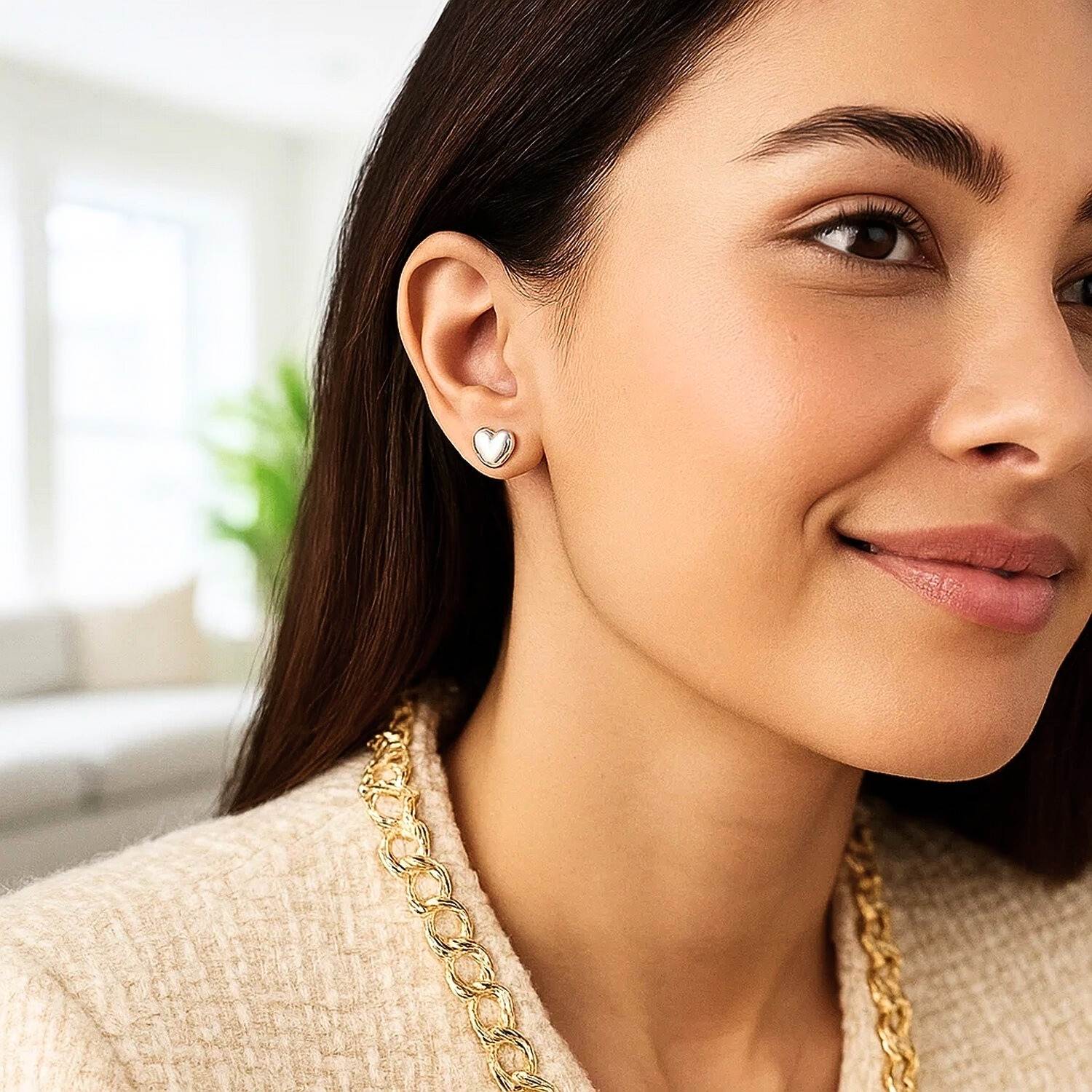 14K White Gold Small Puffy Heart Stud Earrings are a meaningful piece of fine jewelry that combines love and elegance. They stand out as a romantic detail for everyday wear and an emotional complement for special occasions. Order online now to wear the quality of real gold and the elegant sparkle of the heart design every day. Don’t miss out on free shipping and special discount opportunities.