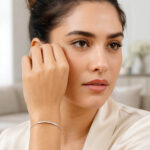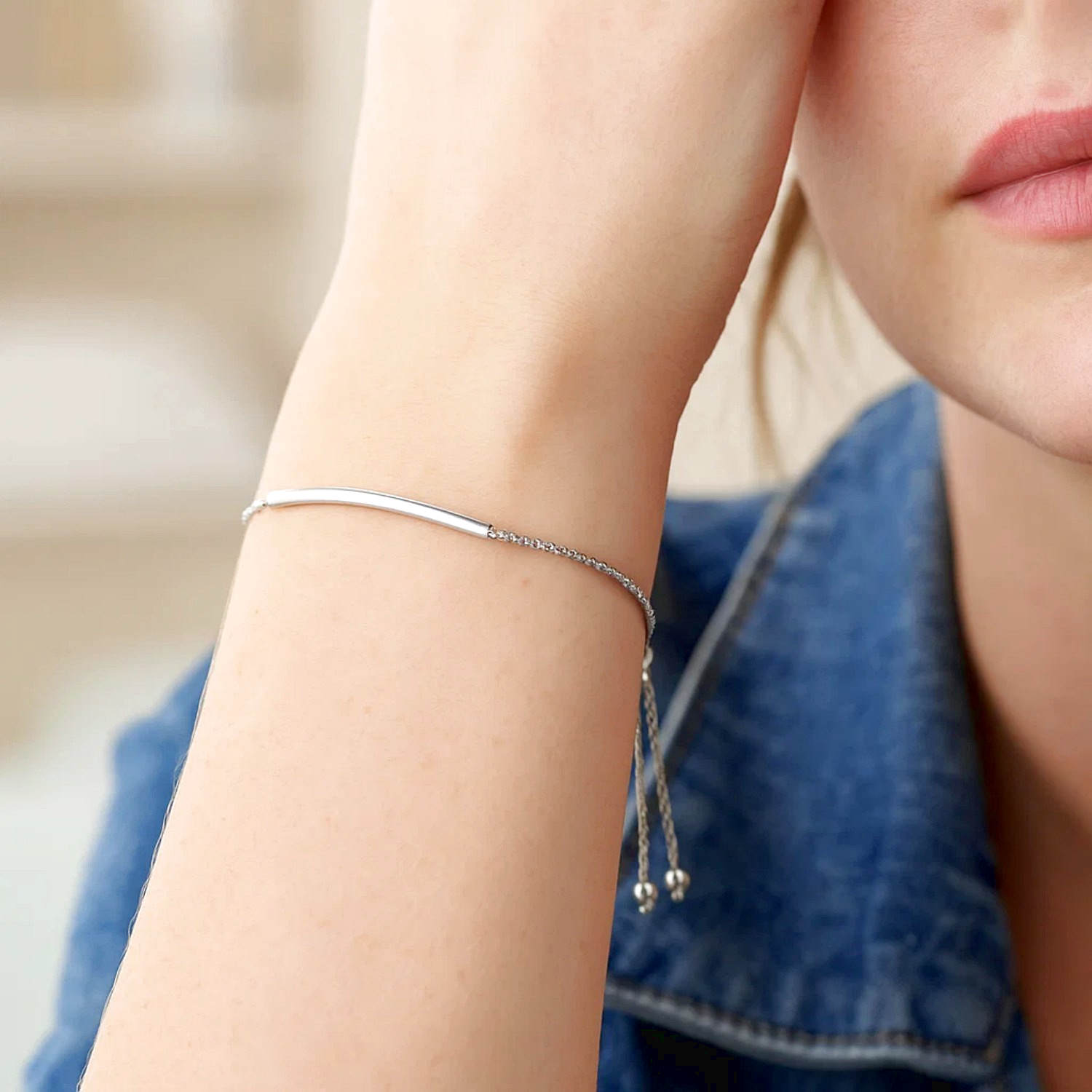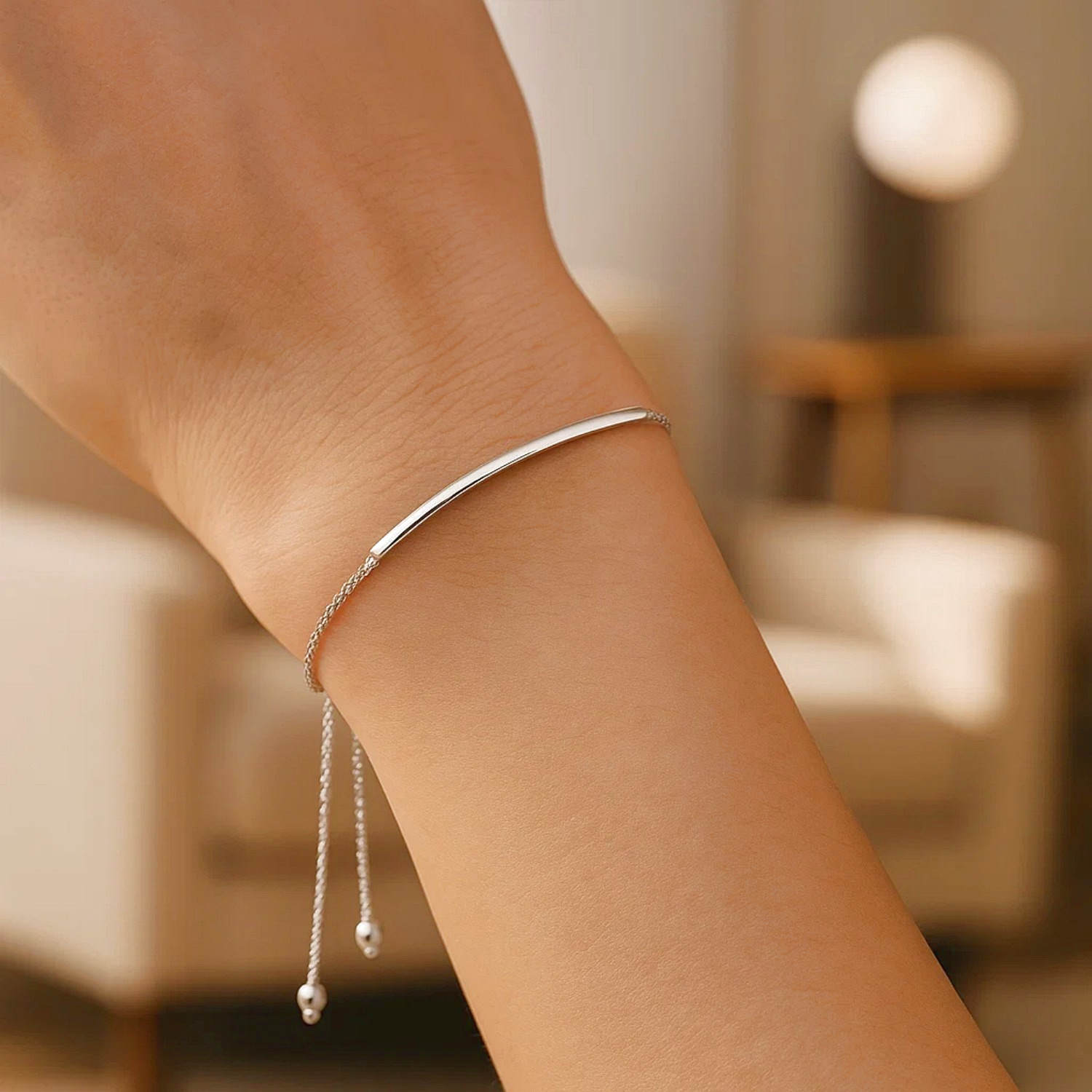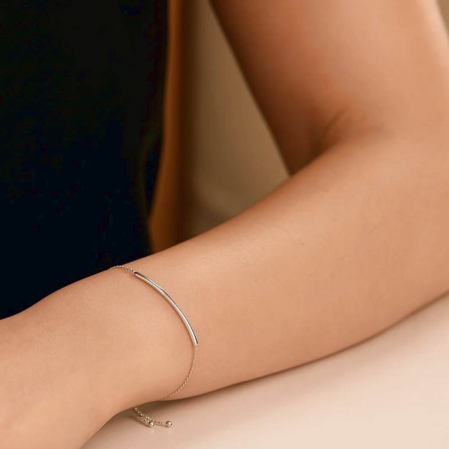 Real 14K White Gold Curved Bar Lariat Bracelet is an elegant bracelet suitable for both women and men for everyday wear, featuring a sophisticated curved bar detail and an adjustable lariat design. Crafted from 14-karat white gold, this delicate piece maintains its luster over time thanks to its durable construction. The thin chain offers a light and comfortable fit on the wrist. While it provides a simple and clean look on its own, it can be combined with other bracelets and layered to create a more bold style.