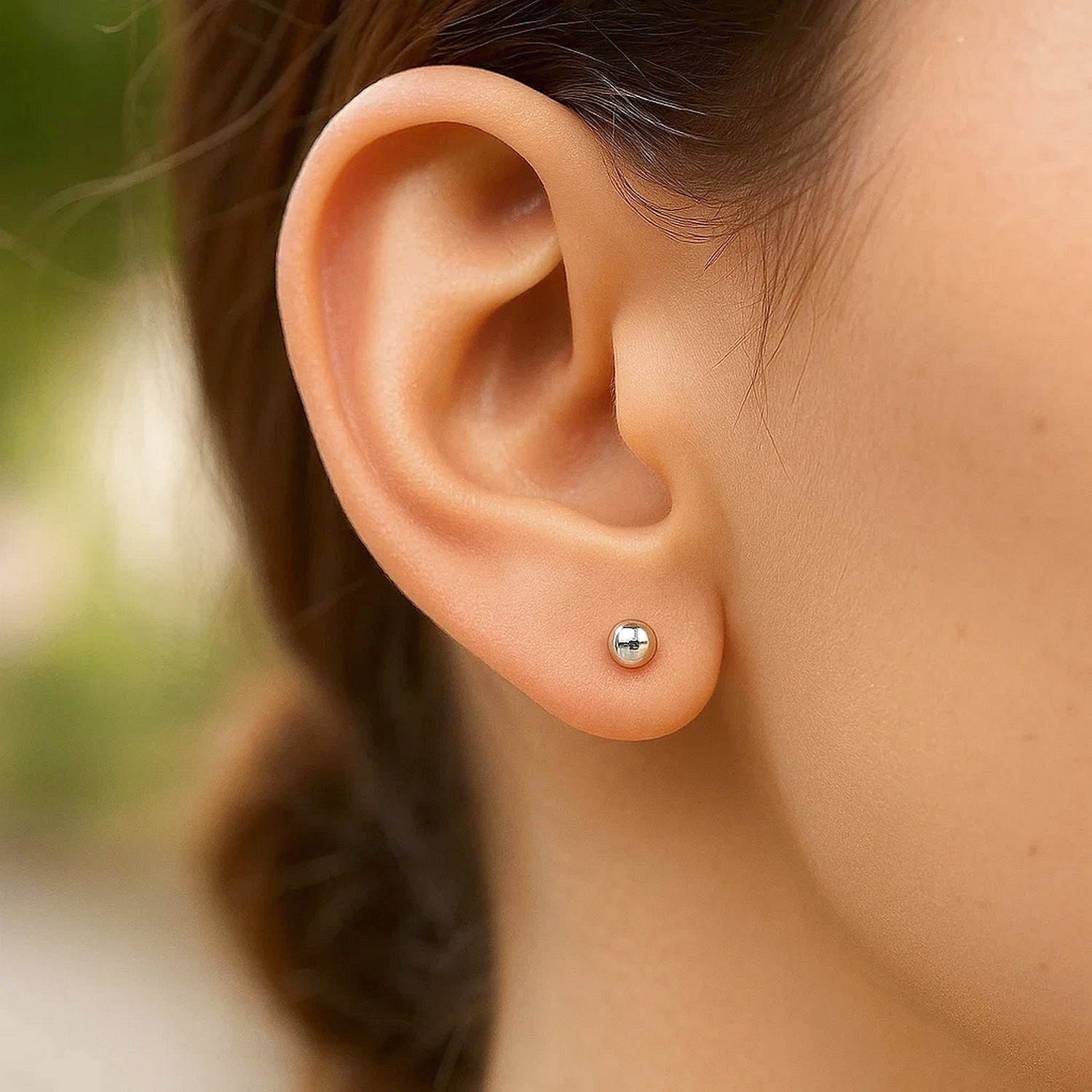 14K White Gold Ball Stud Earrings 3mm offer an elegant look with their simple design and shiny white gold surface. Their small size makes them ideal for everyday wear, and they can also be worn as second-hole earrings. Made from genuine 14K white gold, they won’t tarnish, are nickel-free, and hypoallergenic. Their polished round shape adds a natural sparkle to any style.