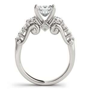 This 14 k white gold vintage halo diamond semi-mount is designed to hold a center stone and enhance its brilliance with a sparkling halo and side stones. It’s an ideal choice for creating a personalized engagement or statement ring.