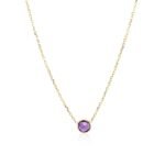 A fine round amethyst brings a lively purple glow to this classic necklace, crafted in solid and real 14 k yellow gold. Its 17-inch length makes it an easy choice for both everyday wear and special occasions.