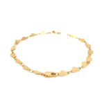 This bracelet features a playful arrangement of mirrored hearts that sparkle with a vibrant shine. The 14k yellow gold not only ensures durability but also radiates a cheerful glow, making it a great accessory for everyday wear or special moments. It symbolizes love and affection, making it an ideal gift for someone special.