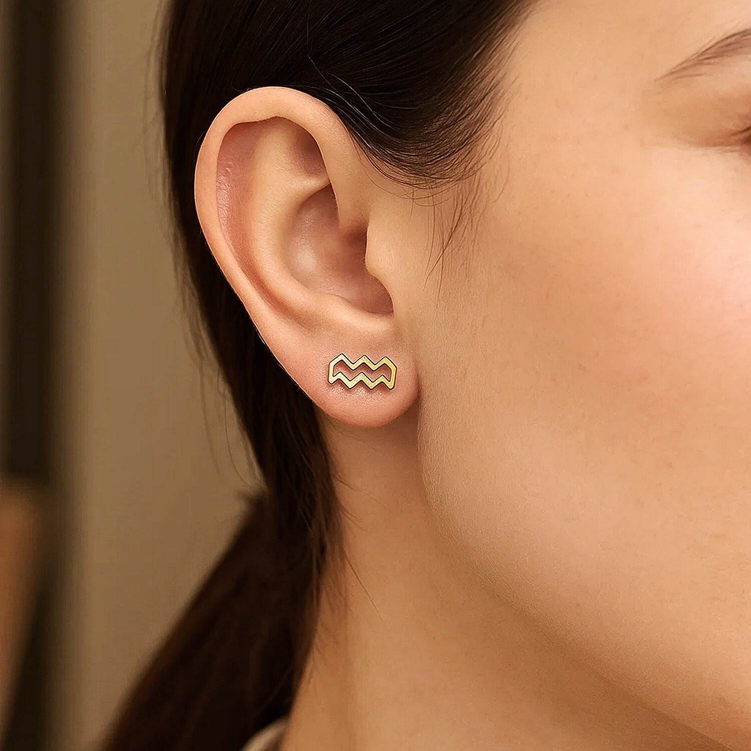 With their elegant details, the 14K Gold Aquarius Stud Earrings add a modern touch to zodiac-themed jewelry collections. Crafted from genuine 14K yellow gold, these minimalist stud earrings add sparkle to everyday outfits with their simple lines. Thanks to their shiny surface and lightweight design, they can be worn comfortably all day long.