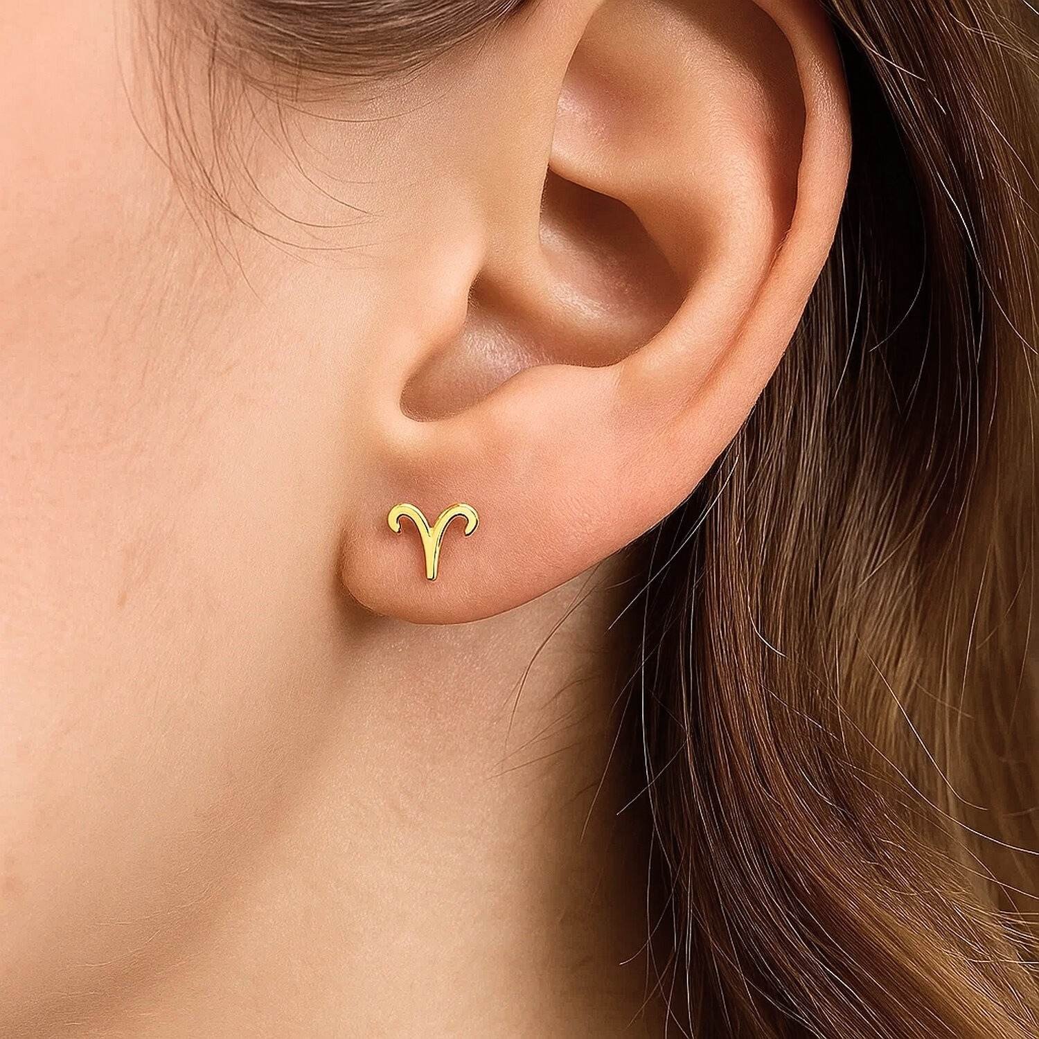 14K Yellow Gold Aries Stud Earrings feature a simple yet meaningful design that reflects the energetic and courageous nature of the Aries zodiac sign. They are crafted from genuine 14K yellow gold and feature fine jewelry craftsmanship. This small motif, symbolizing the Aries zodiac sign, is the perfect size for comfortable wear with everyday outfits or on special occasions. It does not tarnish, is nickel-free, and is suitable for sensitive skin.