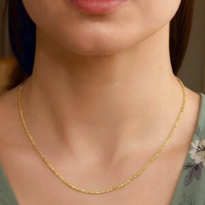 Crafted from real gold, this chain is both durable and timeless. To maintain its shine, simply clean with a soft cloth and store it in a jewelry box when not in use.