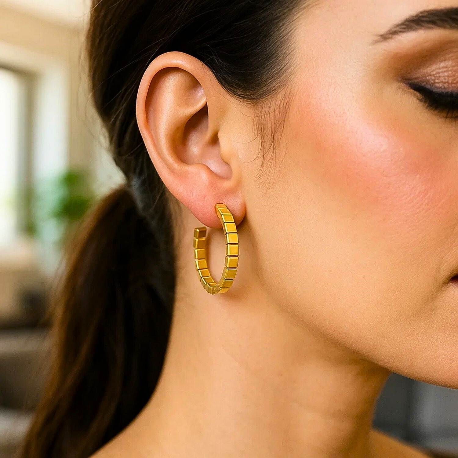 14k Yellow Gold Brick Omega Hoop Earrings for Women