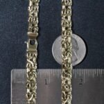 Introducing the 14K Yellow Gold Byzantine Motif Chain Necklace, a stunning piece that effortlessly blends elegance and versatility. This necklace is perfect for adding a touch of sophistication to your everyday attire or making a statement at special events.