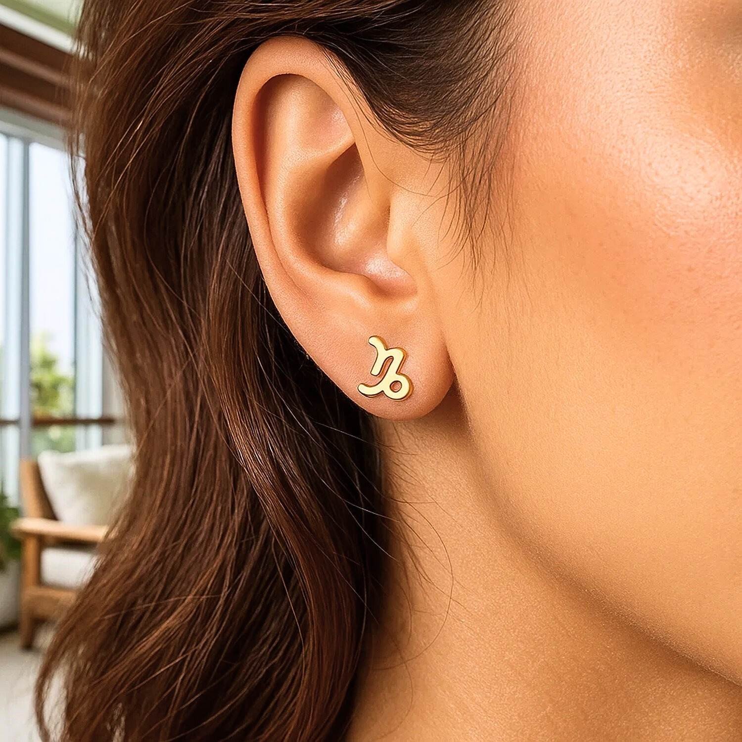 Their small size and push-back clasp system ensure comfortable and secure wear. Suitable for both classic and modern styles, this model also stands out as a meaningful zodiac-themed gift.