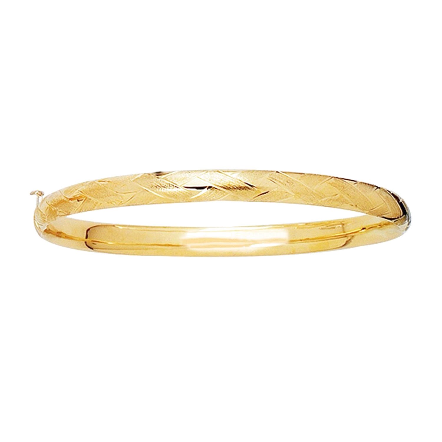 Real 14K Gold Diamond Patterned Polished and Textured Bangle Bracelet, with its woven-look diamond cut texture, is one of the most adorable and elegant pieces in the children’s jewelry collection. Order online now and take advantage of free shipping and special campaign offers.