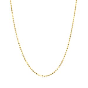 Introducing the exquisite 14 k Yellow Gold Diamond Cut Bead Chain, a timeless piece that adds a touch of elegance to any outfit. This delicate chain is perfect for layering or wearing solo, making it a versatile addition to your jewelry collection.