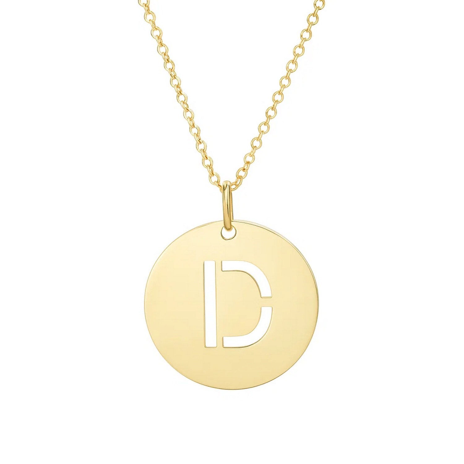 14K Yellow Gold Disc Initial D Pendant Necklace