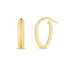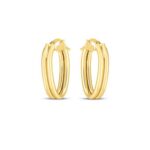 Elegant 14K yellow gold double oval hoop earrings featuring a polished interlocking design. The overlapping oval shapes create a graceful layered effect, adding depth and sophistication. Perfect for both everyday elegance and refined evening wear.