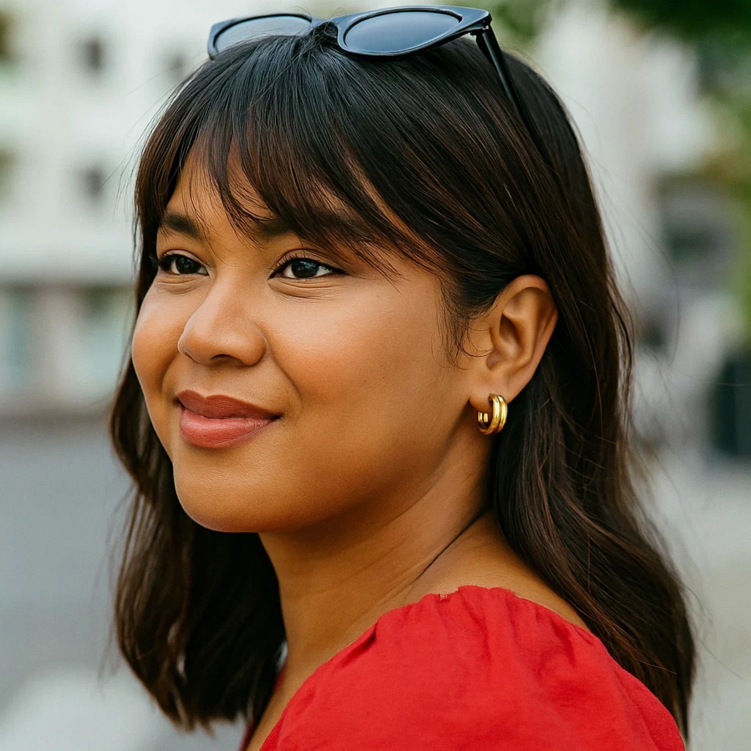 Elegant 14K yellow gold double row round hoop earrings measuring 8.00 mm. The polished double-row design enhances shine and dimension, creating a timeless statement piece that adds sophistication and versatility to any look.