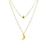 Layered for easy styling, this necklace pairs beautifully with both casual and dressy outfits. The moon and star motifs celebrate dreams and guidance, making this a thoughtful gift or a meaningful keepsake.