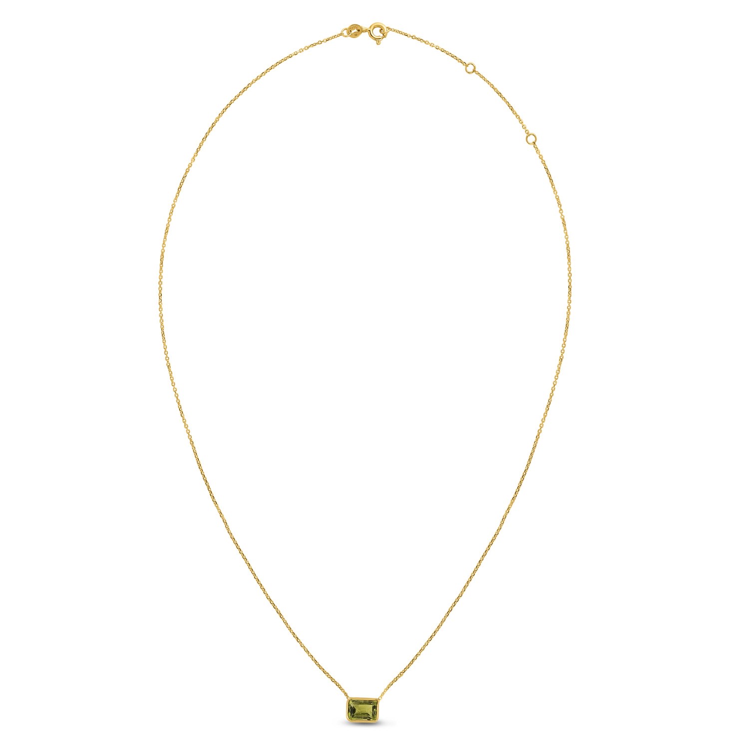 14K Yellow Gold Emerald Cut Peridot Necklace for Women