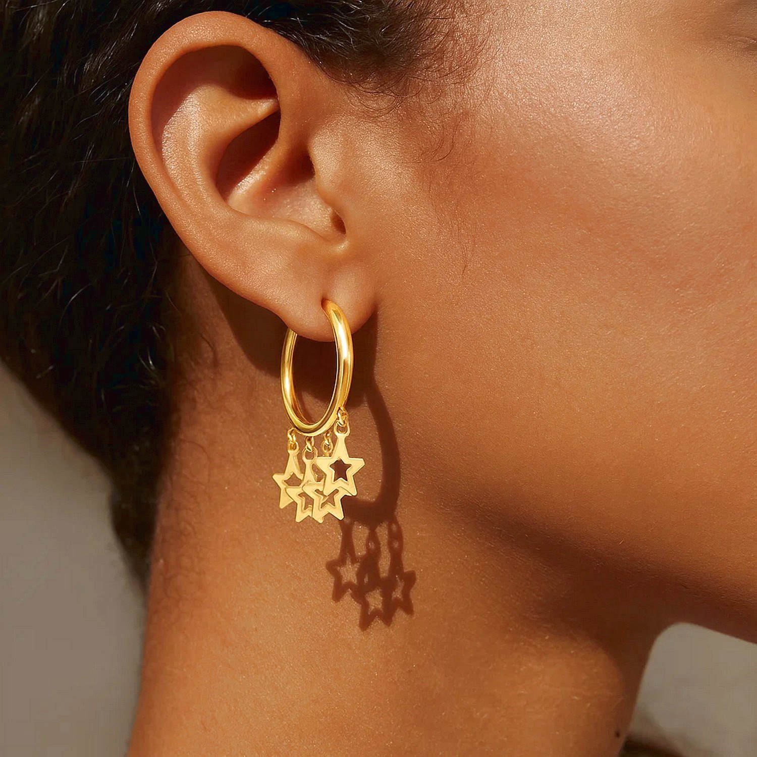 Model: Dangling Star Charm Detail Huggie Hoop Earrings