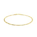 This 14K yellow gold Figaro bracelet offers an elegant and stylish look with a width of 1.9 mm. The Figaro chain design reflects the perfect blend of classic and modern styles. The bracelet is designed with a secure spring ring clasp for safe use. It is 10 inches (approximately 25 cm) long and fits comfortably on the wrist.