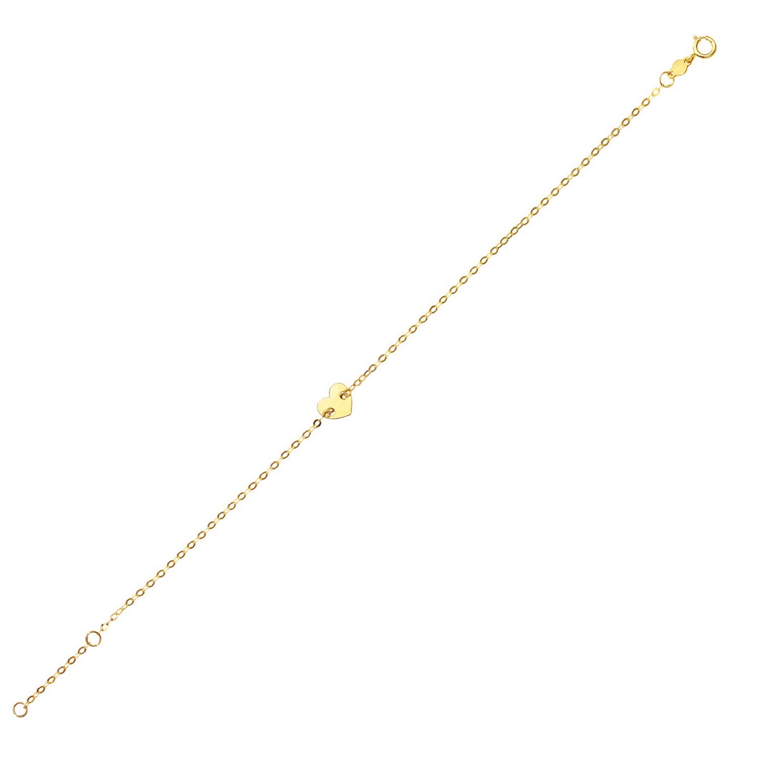 Dainty Heart Bracelet 14K Yellow Gold 7 Inch